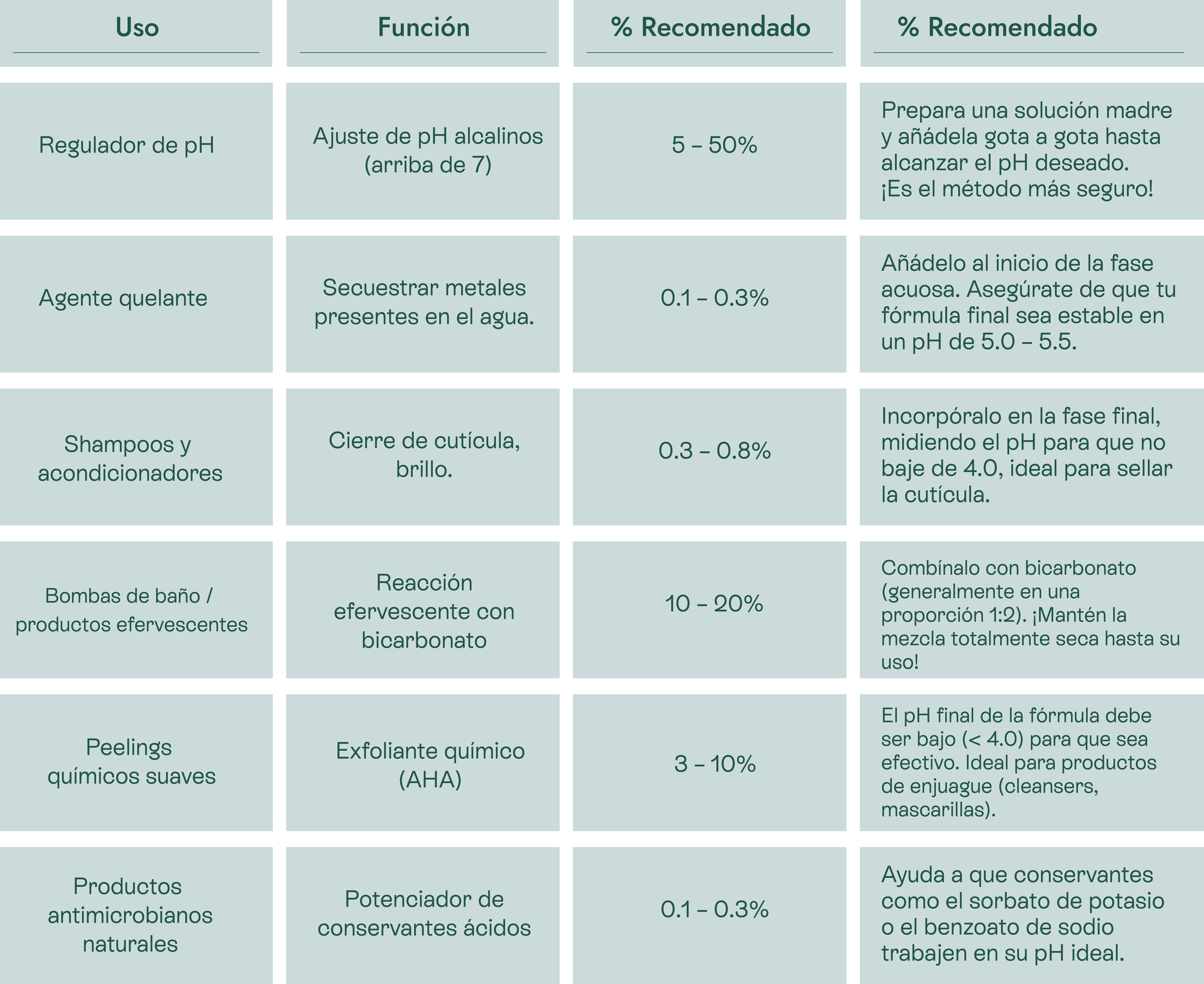 El Maestro del pH Empecemos por lo conocido. Su principal función es acidificar una fórmula, llevándola a un rango de pH seguro y eficaz para la piel (generalmente 4.5 – 5.5) o para el cabello. Es preciso, económico y muy efectivo.