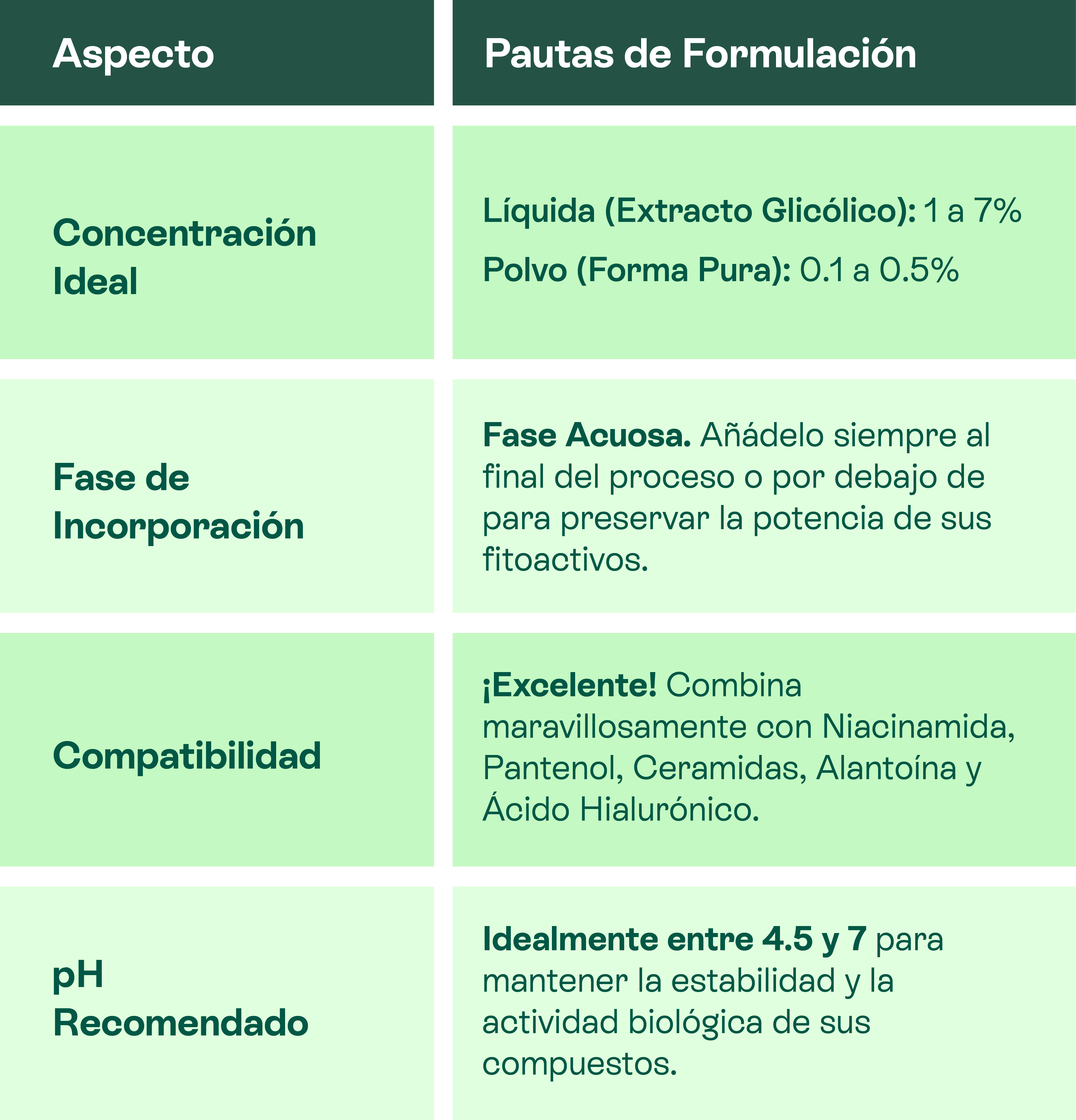 Si estás lista para incluir este valioso extracto en tus cremas y sérums, aquí te dejamos las pautas de formulación de Lúdika para asegurar su máxima eficacia: