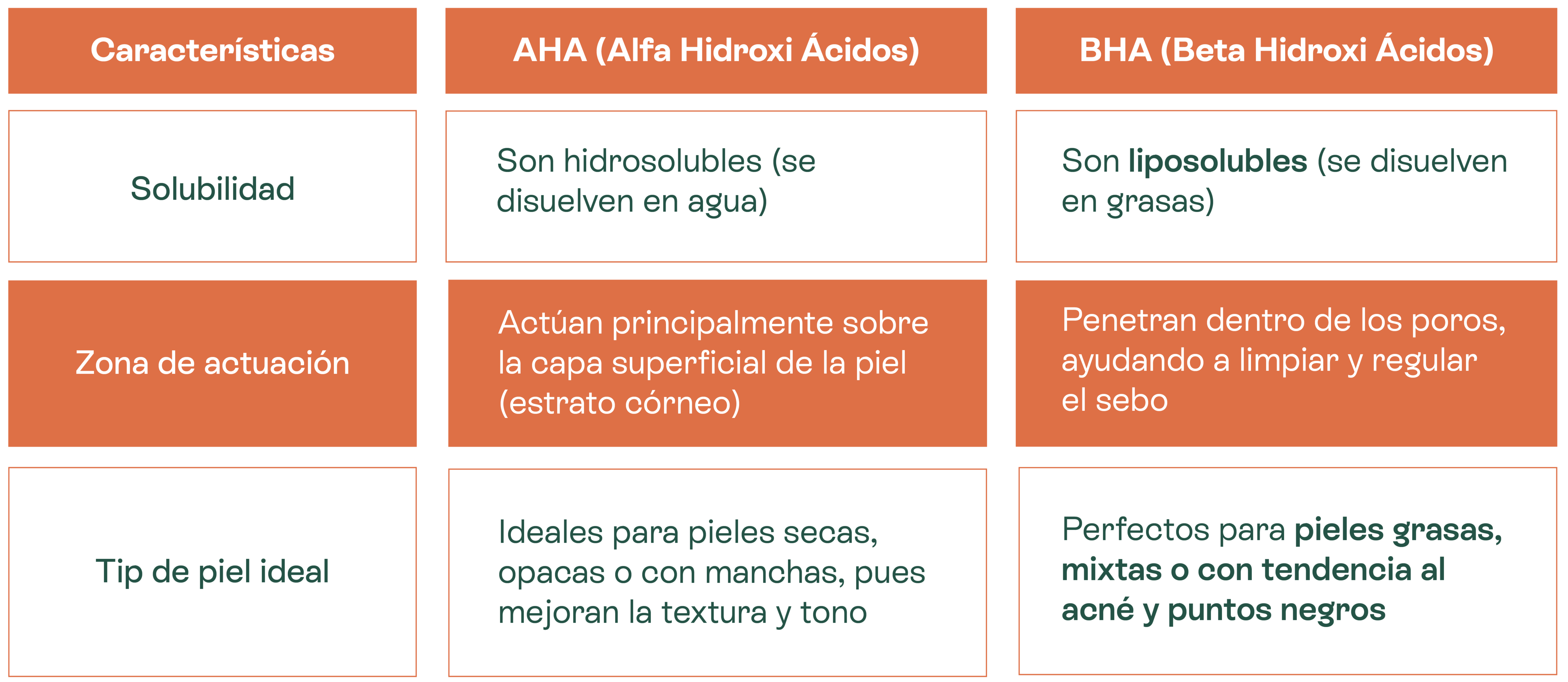 Para que tengas el panorama completo de este mundo de los hidroxiácidos, aquí te presento una comparativa clave entre AHA y BHA: