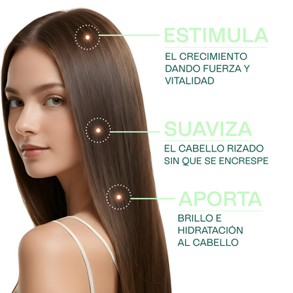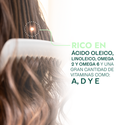 Con sus vitaminas y grasas saludables, este aceite nutre el cabello desde la raíz hasta las puntas. Ayuda a restaurar la salud del cuero cabelludo, regulando la producción de sebo, y protege las fibras capilares del daño ambiental, dejando el cabello con un brillo natural y una textura más suave y manejable.