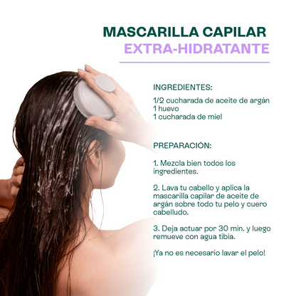 • Mascarilla Capilar Nutritiva y Reparadora: Usa solo o combinado con manteca de karité. Aplica generosamente de medios a puntas (o en todo el cabello para nutrición profunda). Deja actuar y lava. Deja tu cabello increíblemente brillante, suave y fuerte