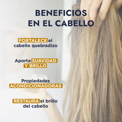 • Acondicionador y Brillo: Aplica una pequeña cantidad en el cabello húmedo, de medios a puntas, como un acondicionador sin enjuague para aportar suavidad, tersura y brillo sin apelmazar.