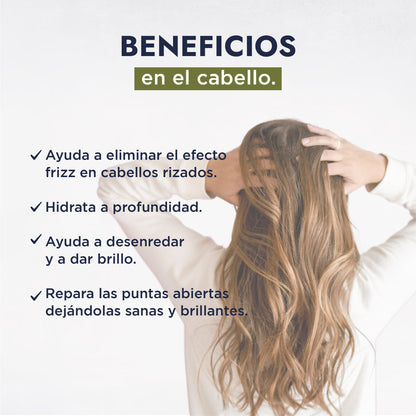 • Acondicionador Natural: Puedes añadir unas gotas a tu acondicionador habitual o aplicarlo directamente de medios a puntas para desenredar, nutrir y dar brillo al cabello, dejándolo más manejable.