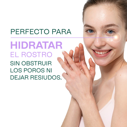 Es un potente antienvejecimiento gracias a su riqueza en antioxidantes que protegen la piel del daño ambiental. Sus propiedades antiinflamatorias y antimicrobianas lo hacen ideal para tratar pieles con acné, ya que reduce la inflamación y la proliferación de bacterias. Ayuda a tonificar la piel y a reducir la hinchazón, manteniendo la elasticidad y la firmeza. Es perfecto para hidratar el rostro sin obstruir los poros ni dejar residuos.