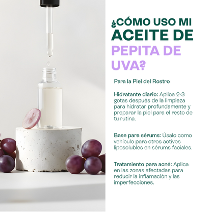 Aceite de Pepita de Uva Puro | Facial, Corporal y Corporal | Aceite de masaje, Antioxidante y Regulador Sebáceo