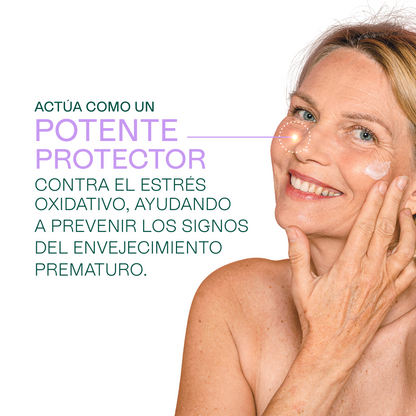 ¿Sabías que... es un poderoso escudo antioxidante que protege la piel del daño de los radicales libres y el fotoenvejecimiento?
