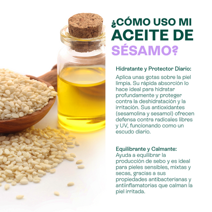 Aceite de Sésamo Ajonjolí Virgen | Facial Capilar y Corporal | Antiedad, Hidratante y Protector Capilar