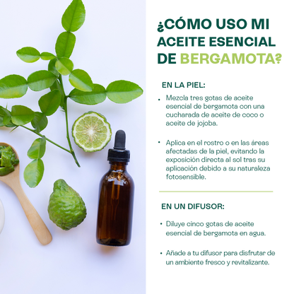 Aceite Esencial de Bergamota | Aromaterapia y Spa | Calmante, Purificante y Elevador del Ánimo para Piel y Mente