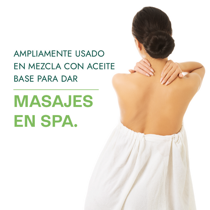 • En Masajes Corporales: Diluye unas gotas en un aceite portador como el de jojoba o de almendras y úsalo para masajear los músculos adoloridos, las articulaciones o las áreas con tensión, como el cuello y la espalda.