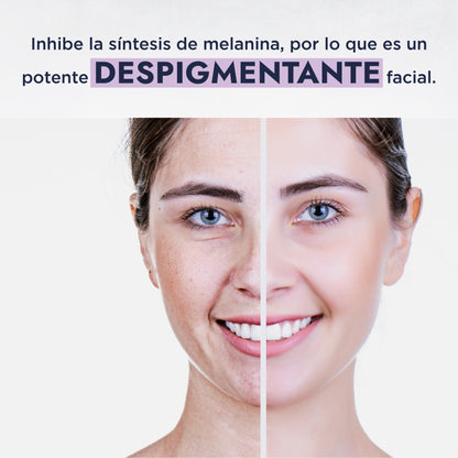 Al promover una renovación celular acelerada y actuar sobre la producción y distribución de la melanina, el activo es excepcionalmente útil para el tratamiento de la hiperpigmentación post-inflamatoria y de manchas complejas como el melasma, logrando un tono mucho más parejo y una luminosidad renovada.