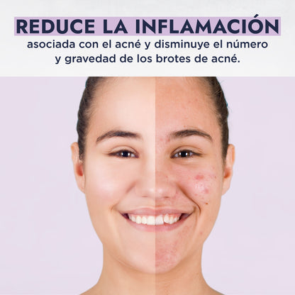 Su capacidad única para normalizar la descamación de la piel evita que las células muertas obstruyan los folículos, lo que previene la formación de puntos negros y espinillas. Además, posee un efecto antiinflamatorio que reduce las lesiones quísticas y pápulas rojas, mejorando la apariencia del acné más resistente.