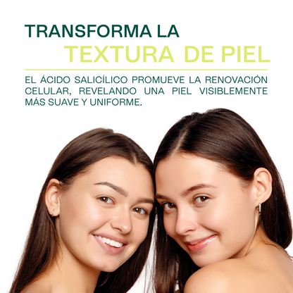 Su afinidad por el aceite le permite desincrustar los poros desde su interior. Al disolver los tapones de sebo y queratina que causan los comedones, el ácido salicílico es insuperable para prevenir la formación de puntos negros y espinillas antes de que se vuelvan lesiones inflamatorias, logrando una piel más clara y descongestionada.