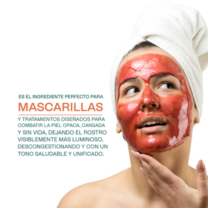 • Exfoliante Suave: Combínala con un polvo exfoliante fino (como arroz molido) o en una fórmula de gel para una limpieza profunda que suaviza la textura de la piel.