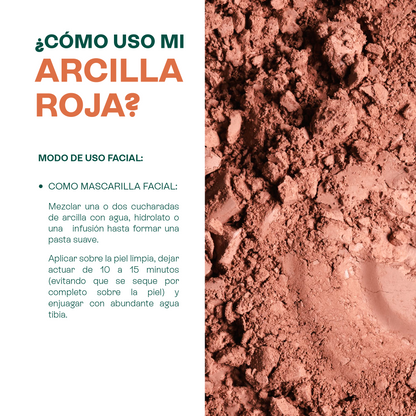 Arcilla Roja | Facial y Capilar | Calmante, Desintoxicante y Revitalizante para Piel Sensible y Cabello Graso