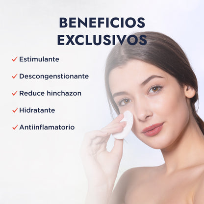 • Descongestión y Reducción de Bolsas: Su potente efecto vasoconstrictor y drenante es ideal para esta zona, ya que ayuda a reducir la hinchazón y la retención de líquidos que causan las bolsas bajo los ojos.