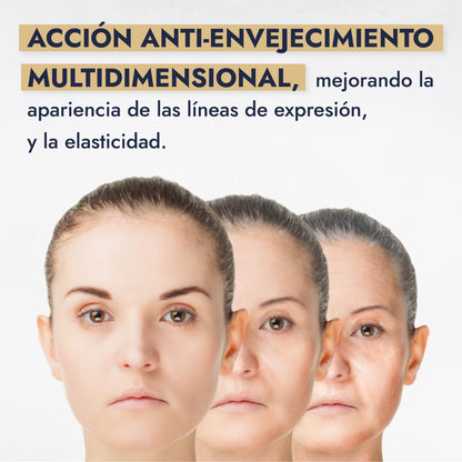 • Potenciador de la Elasticidad y Resiliencia: El refuerzo de la red de soporte dérmica le da a la piel una mejor capacidad biomecánica. Esto mejora la elasticidad, permitiéndole a la piel estirarse y "volver a su sitio" de manera más eficiente, un signo clave de la juventud.