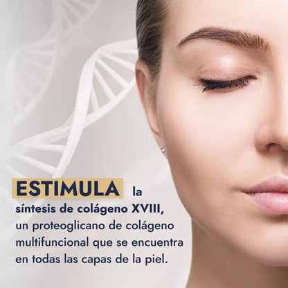 ¿Sabías que... al estimular el Colágeno XVIII, este activo está trabajando como un ingeniero que re-ancla la epidermis a la dermis, que es la razón principal de su efecto tensor?