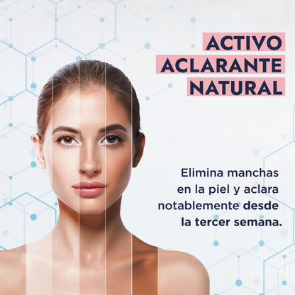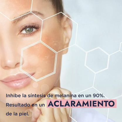 Aclaramiento significativo: Reduce visiblemente la hiperpigmentación, desvaneciendo manchas oscuras y unificando el tono de la piel. Es ideal para tratar manchas solares, melasma y otras discromías.
