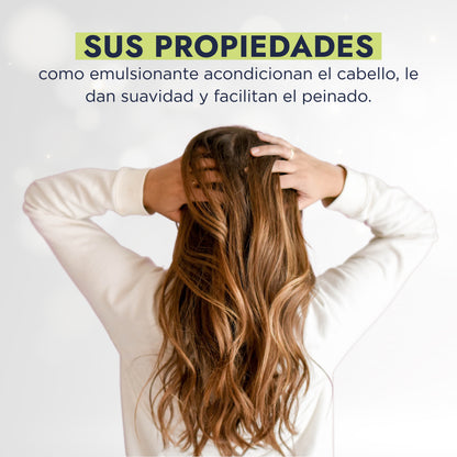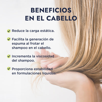 Acondicionamiento suave: Neutraliza el efecto desengrasante de otros tensioactivos, aportando suavidad, brillo y flexibilidad al cabello.