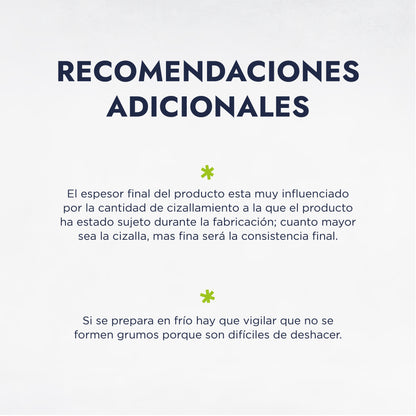 • Consideraciones Sensoriales: A altas concentraciones (más de 1.0%), puede dejar una sensación ligeramente pegajosa. Si se desea una textura más suave y menos pegajosa, se recomienda combinarla con otras gomas naturales o usar un grado de Goma Xantana de malla fina.