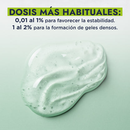• Reología Inteligente (Pseudoplástica): Su característica pseudoplástica permite que las formulaciones sean espesas y no chorreen en el envase, pero se fluidifican al contacto con la piel, facilitando la aplicación y el extender el producto de forma uniforme.