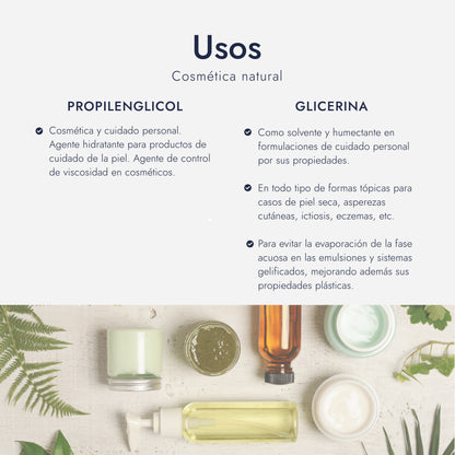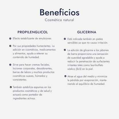 Glicerina vegetal y Propilenglicol | Cosmético | Humectación Profunda