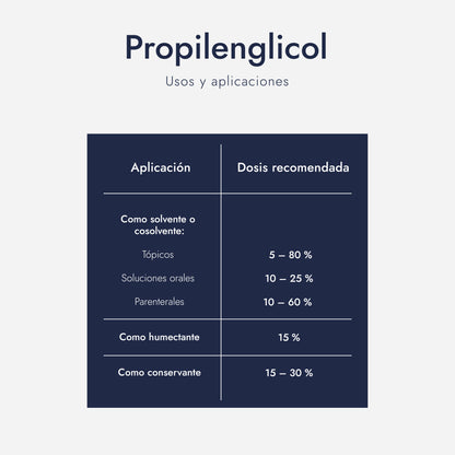 Incompatibilidades: Glicerina: No usar pura en piel y activos sensibles | Propilenglicol: Ácidos/bases fuertes y sales de hierro