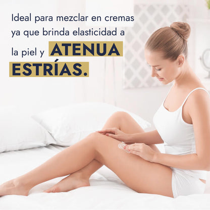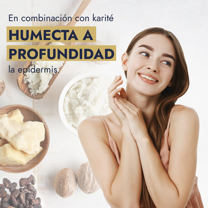 Debido a su intensa capacidad para nutrir y suavizar la dermis, es un ingrediente clásico y muy recomendado en el cuidado corporal. Al mantener la piel elástica y flexible, es altamente beneficiosa para prevenir la formación de estrías durante los cambios de peso o el embarazo.
