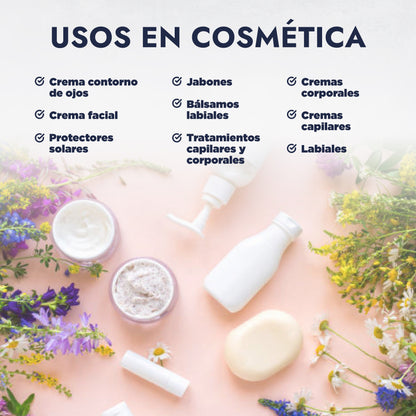 • Enriquecimiento Emoliente en Emulsiones: Se añade en la fase oleosa de cremas y lociones para aumentar la sensación de nutrición y riqueza, sin necesidad de modificar drásticamente el resto de los componentes, siendo compatible con aceites, mantecas y ceras naturales.