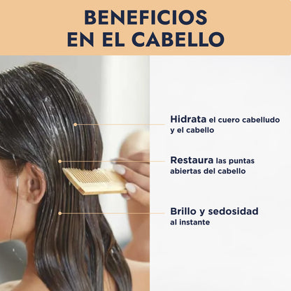 • Mascarilla para Cuero Cabelludo Seco: Masajea una cantidad mínima en el cuero cabelludo irritado o seco para calmar el picor y tratar la descamación.