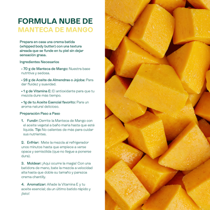 ¿Sabías que... la Manteca de Mango es la base preferida para hacer mantecas corporales batidas porque su composición le permite montarse en una textura esponjosa, ligera y no grasa?