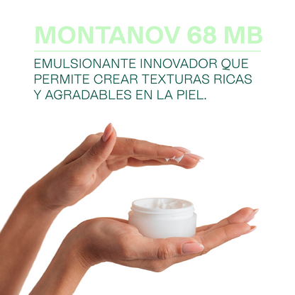 El principal beneficio de Montanov 68 es la experiencia que ofrece en la piel. Confiere a las emulsiones una textura ligera, suave y fresca que se absorbe rápidamente. Proporciona una sensación de riqueza y body sin dejar un residuo pegajoso o graso, culminando en un acabado aterciopelado y mate, ideal para productos faciales donde la sensorialidad es crucial.