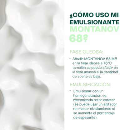 Su alta capacidad de carga oleosa le permite emulsionar de forma estable fórmulas con un gran porcentaje de aceites y mantecas vegetales (hasta 40% de fase grasa). Esto permite la creación de cremas muy nutritivas y ricas en lípidos que, gracias al Montanov 68, conservan un tacto ligero y una excelente extensibilidad.