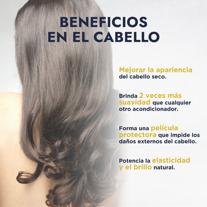 • Brillo Espectacular: Su principal beneficio. Alisa la cutícula del cabello de forma tan efectiva que crea un brillo intenso, similar al de un espejo, aumentando la luminosidad natural del cabello opaco.